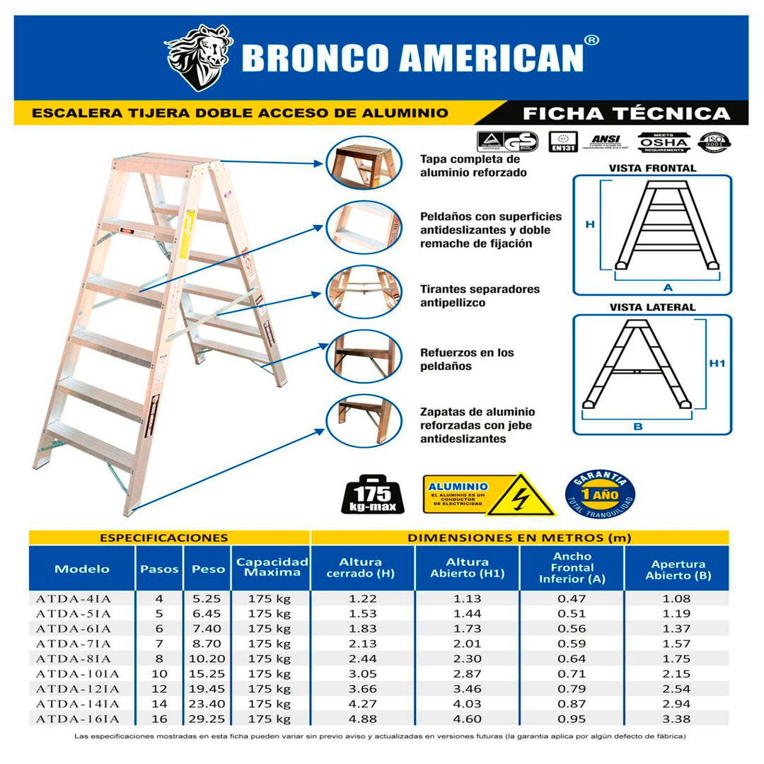 Escalera Aluminio Tijera Doble Ascenso de 5 Pasos-Bronco American Ladder