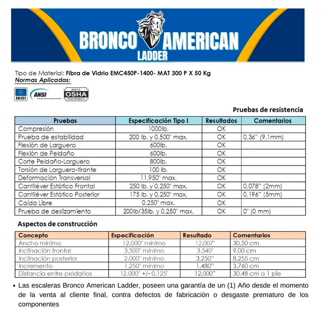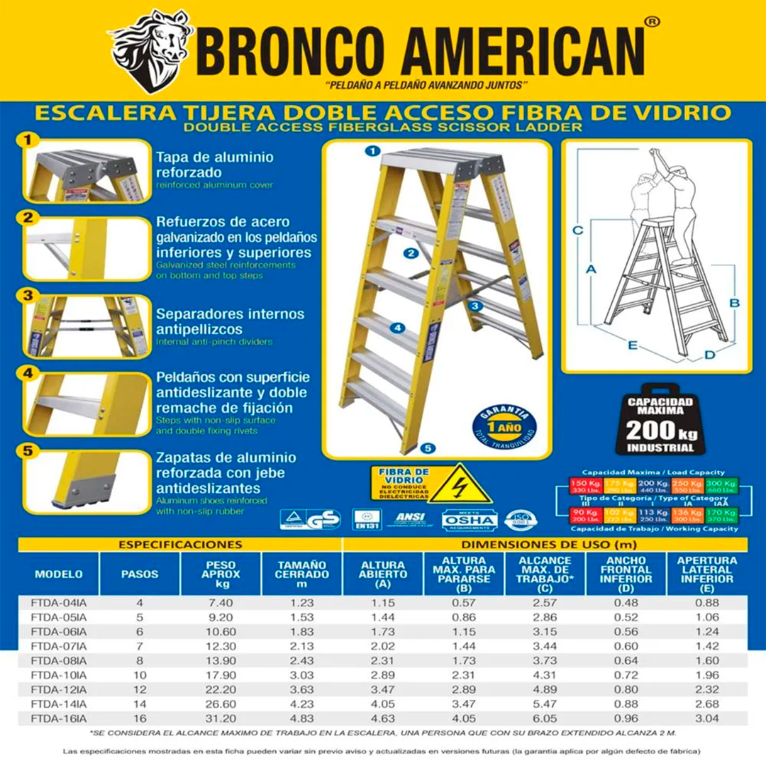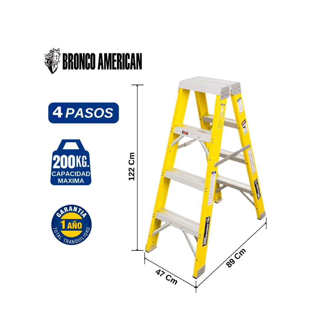 Escalera Fibra de Vidrio Tijera Doble Acceso de 4 Pasos Bronco American Ladder