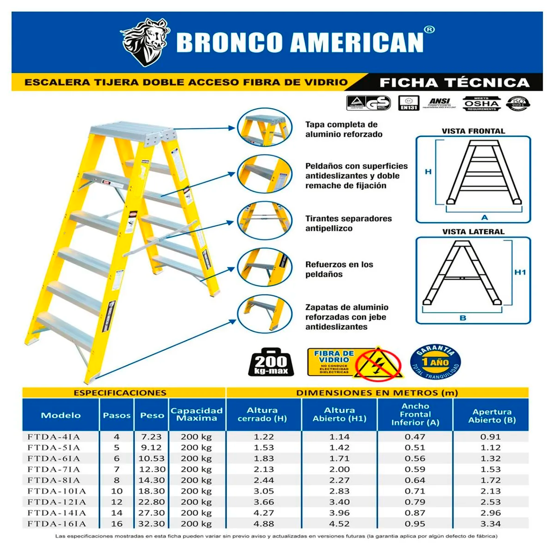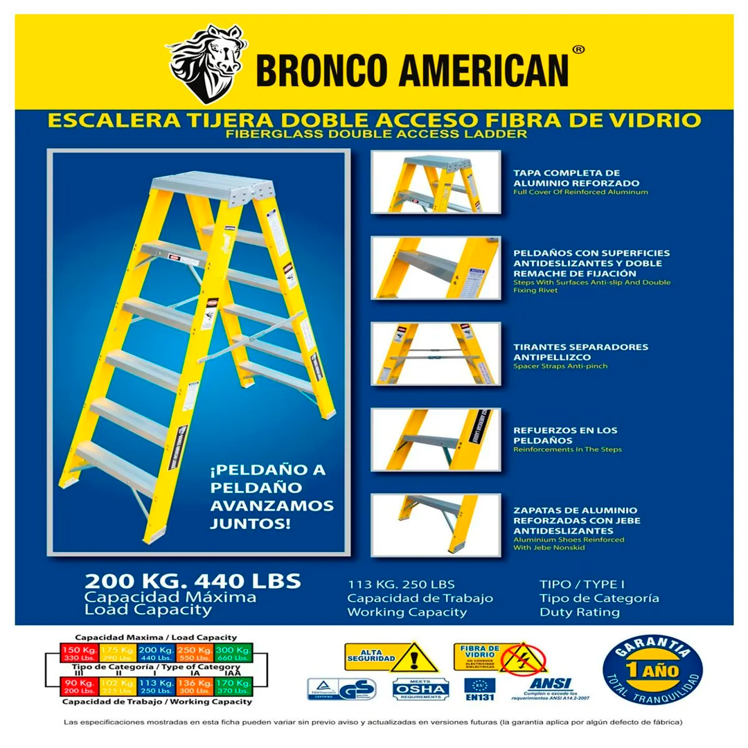 Escalera Fibra de Vidrio Tijera Doble Ascenso de 14 Pasos Bronco American Ladder
