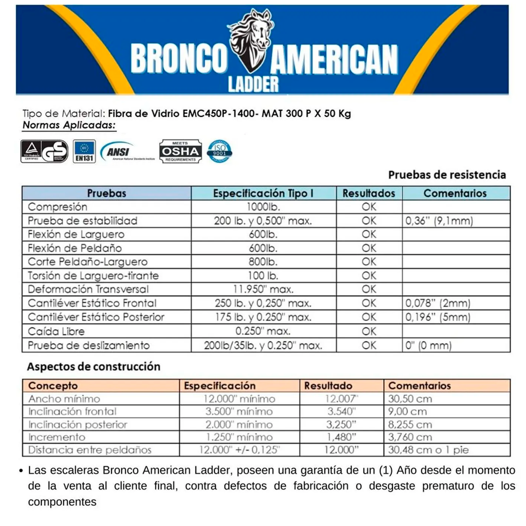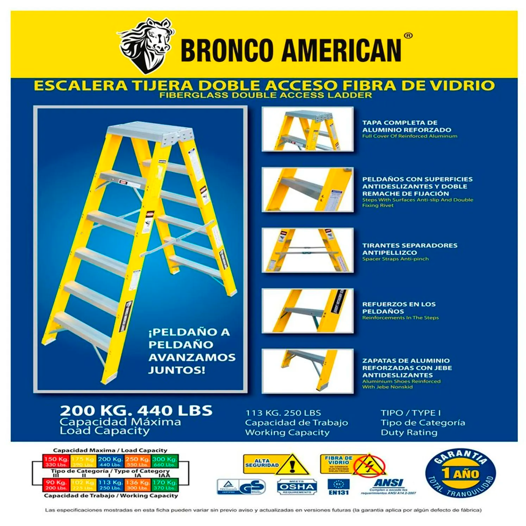 Escalera Fibra de Vidrio Tijera Doble Ascenso de 8 Pasos Bronco American Ladder