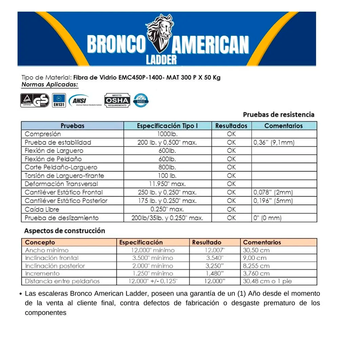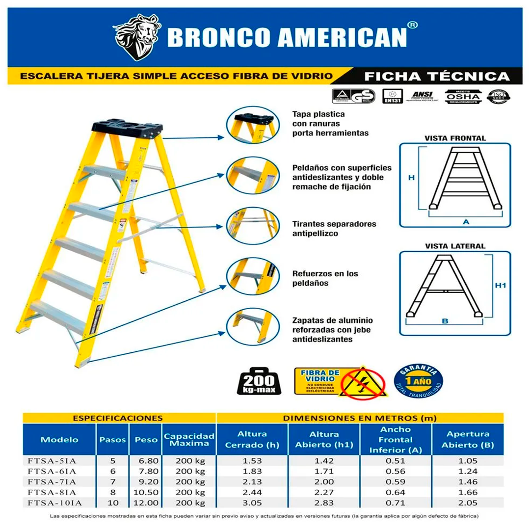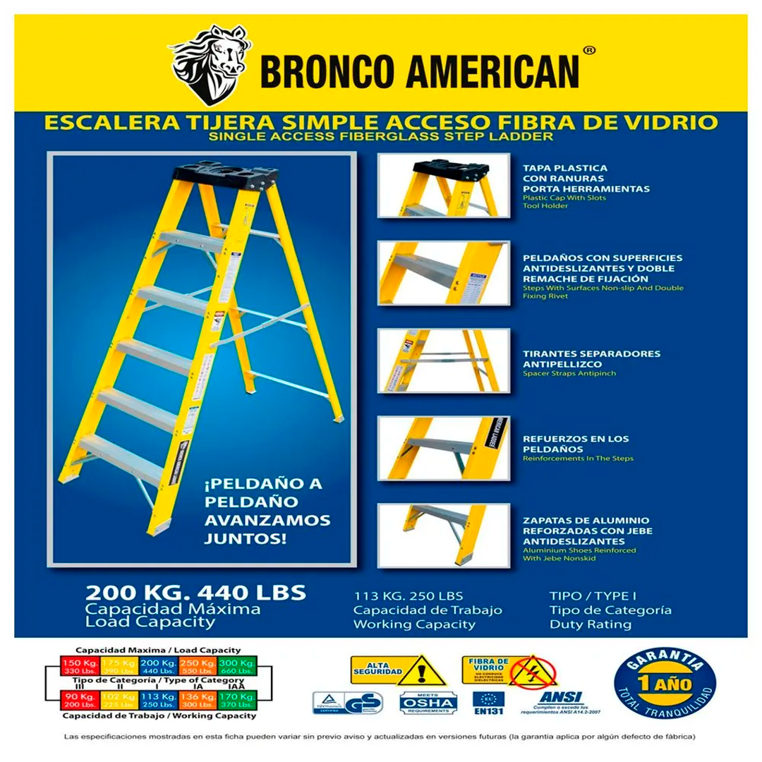 Escalera Fibra de Vidrio Tijera Simple Ascenso de 8 Pasos Bronco American Ladder