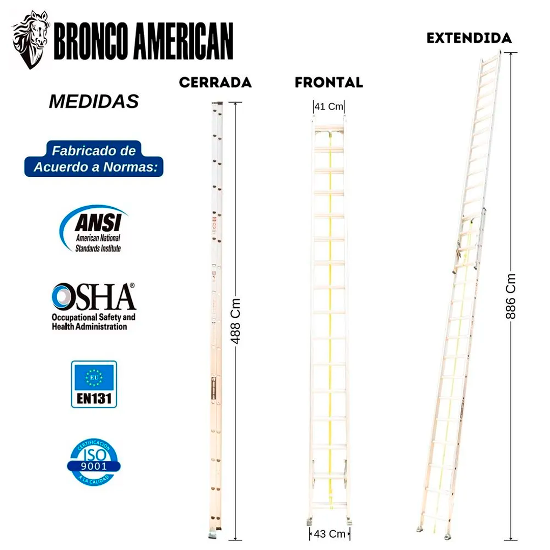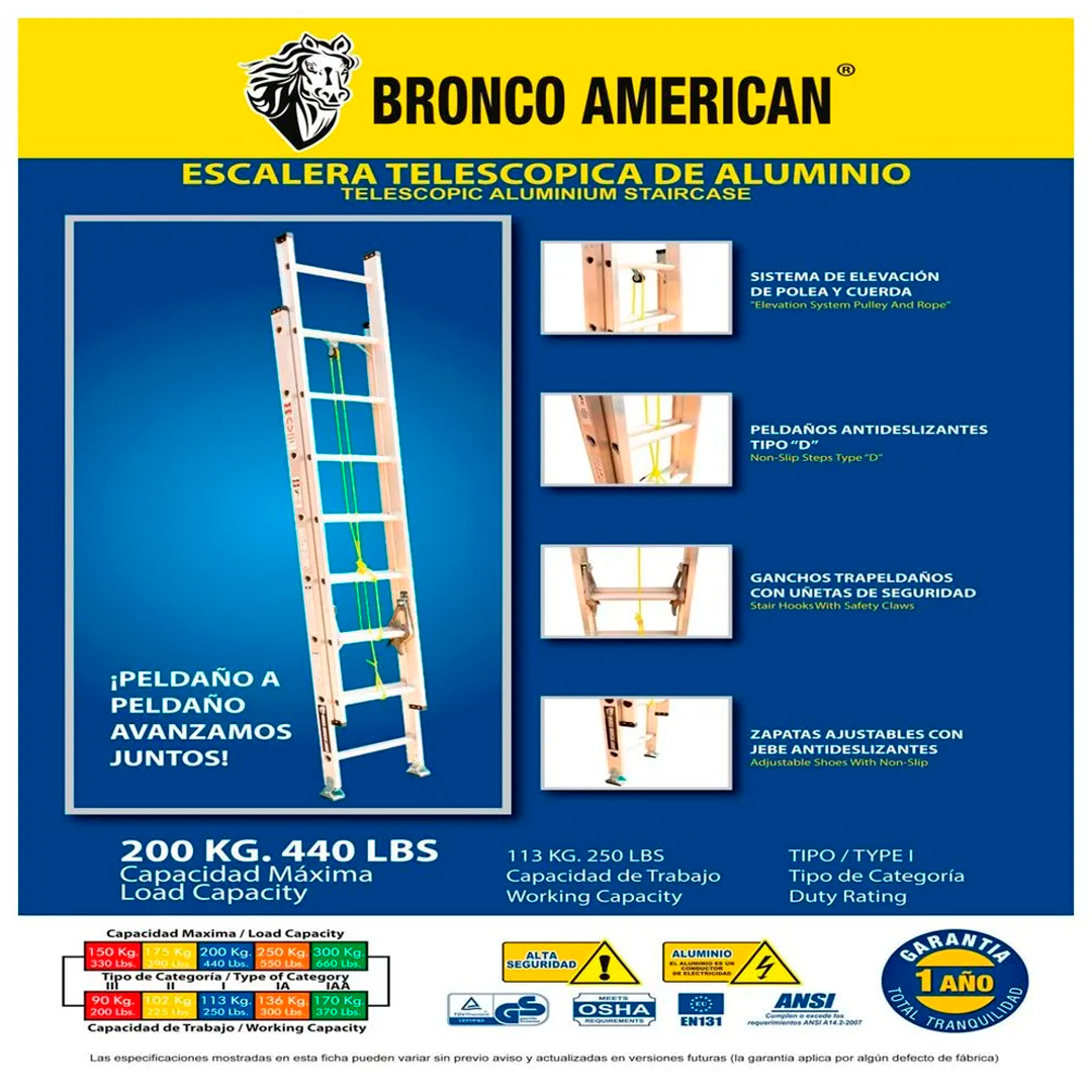 Escalera telescópica de Aluminio 32 pasos Bronco American Ladder