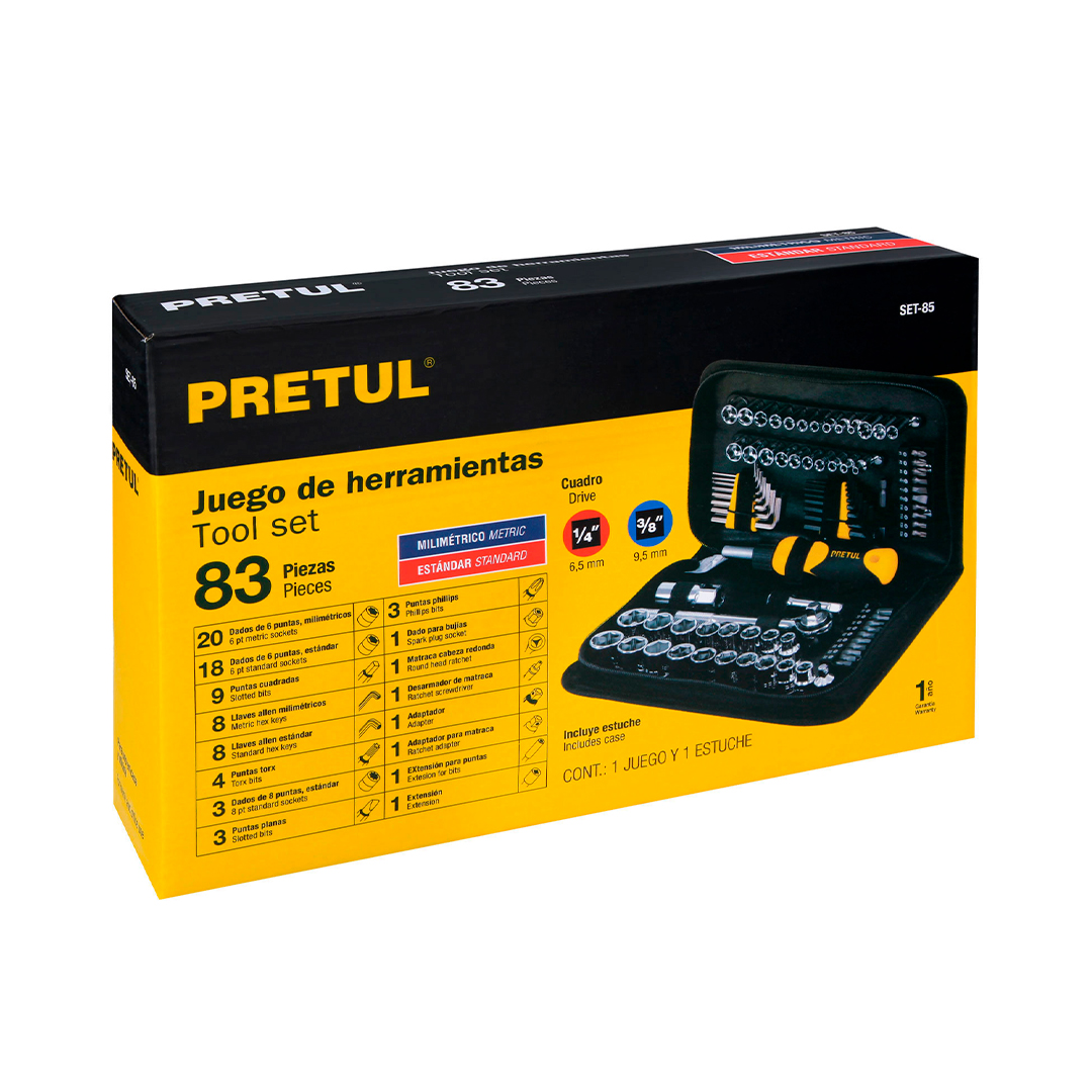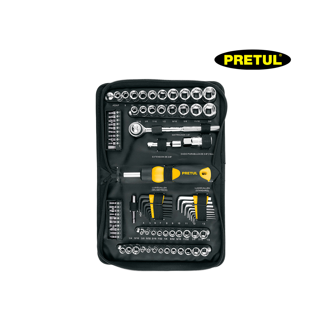 38 Dados 6 puntas: (10) 4 a 13 mm, (10) 5/32″ a 1/2″, (8) 5/16″ a 3/4″, (10) 9 a 19 mm |