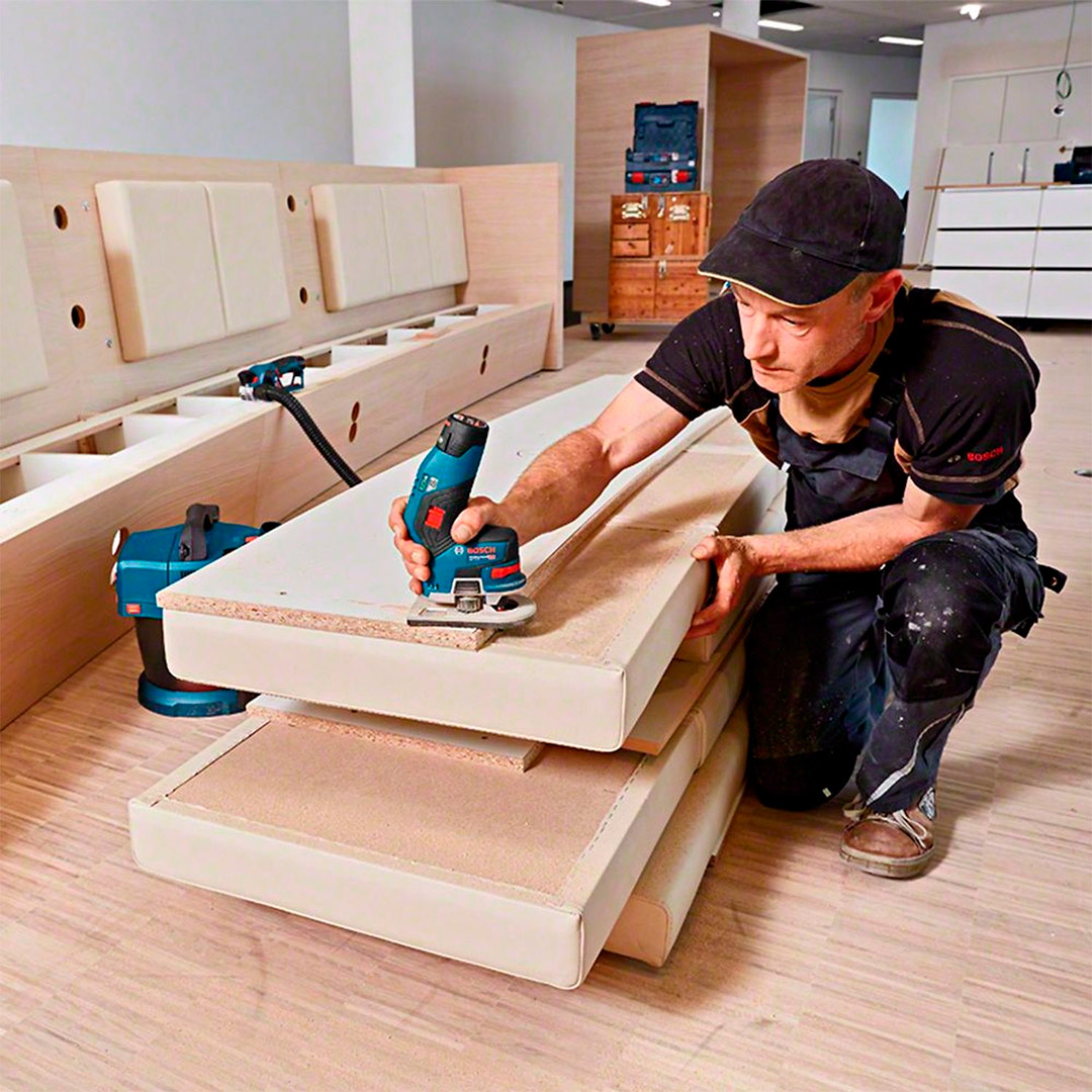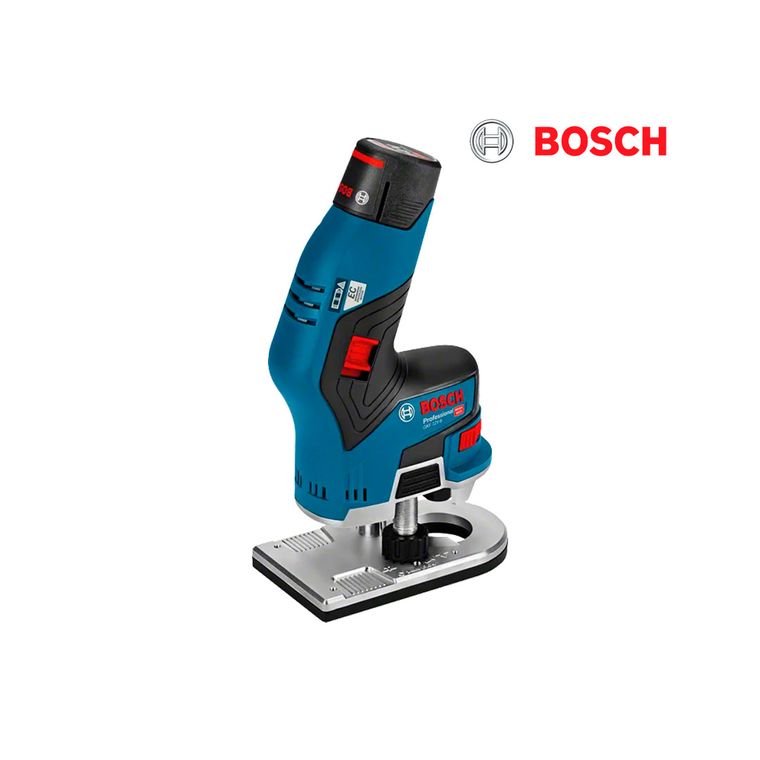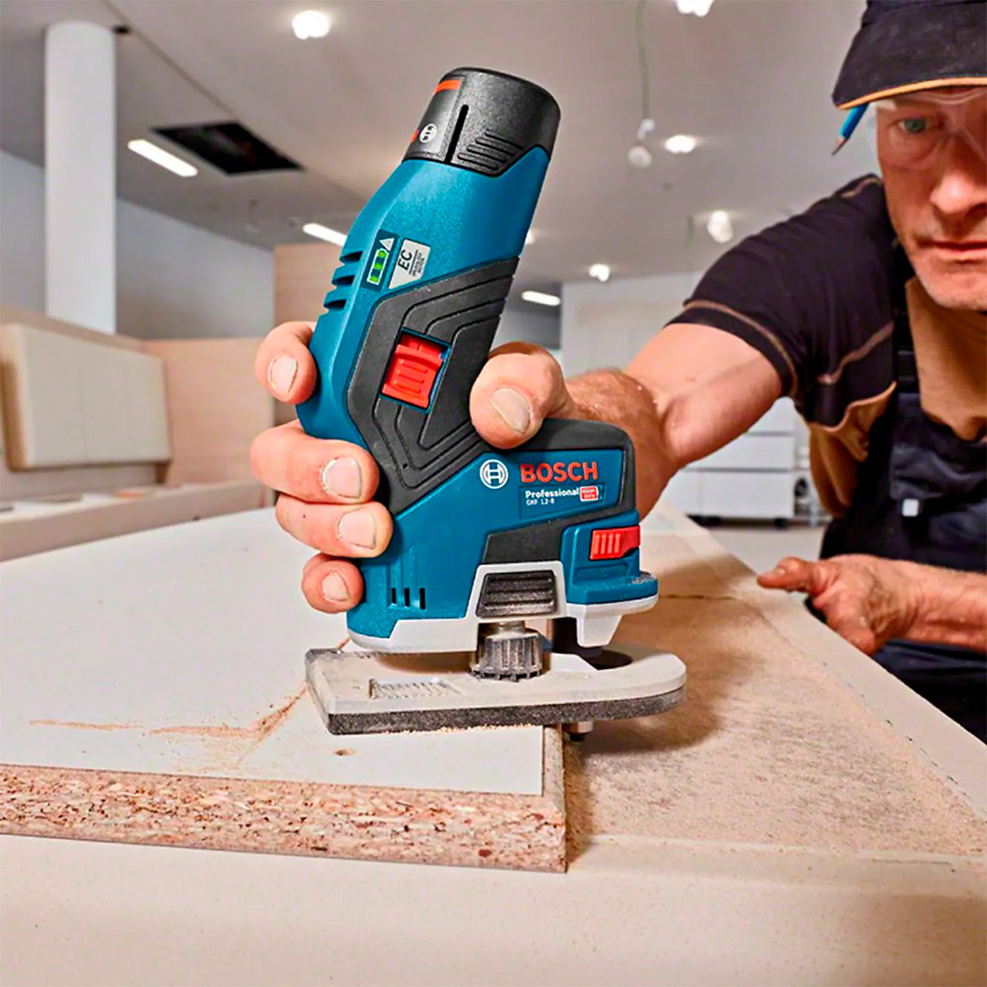La primera fresadora de 12V con diseño único y control perfecto, ideal para uso en las instalaciones y compatible con cualquier batería de 12V de Bosch.